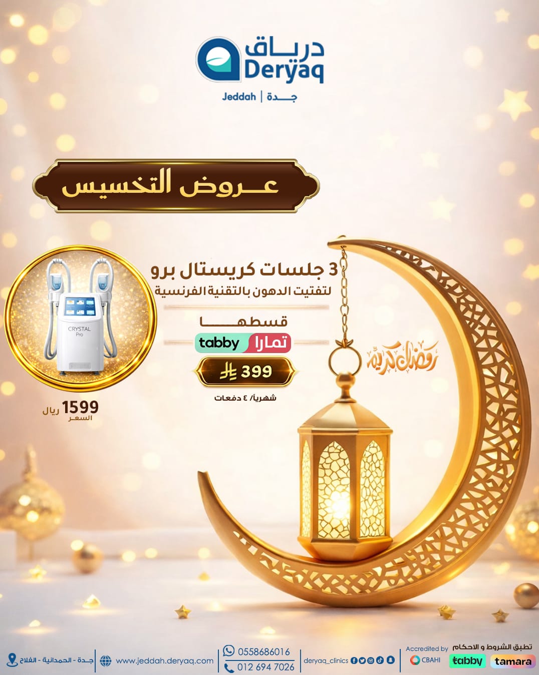 نعم . متوفر لدينا جهاز الكريستال برو لتفتيت الدهون بالتبريد